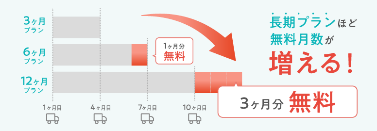 さらに、長期間継続して効果を実感していただきやすいように、長期継続における割引をご用意しています。