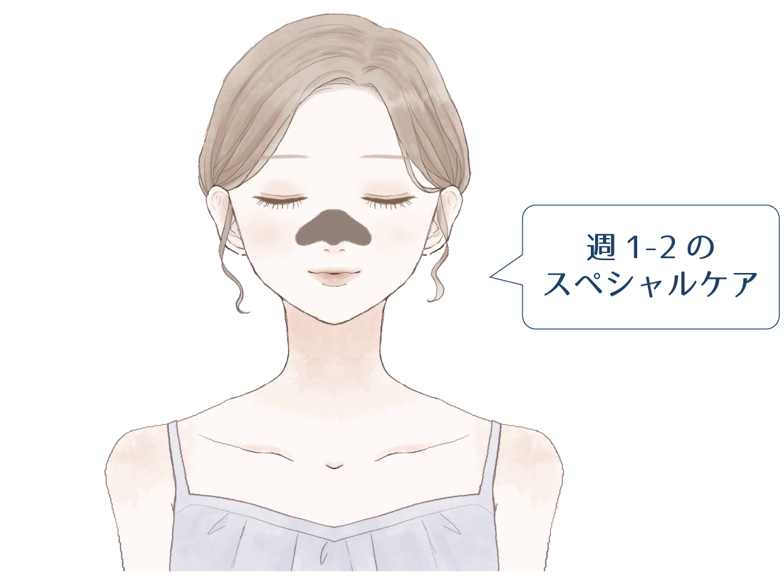 角質や毛穴の汚れを落としつつ、保湿を行い毛穴の黒ずみを改善します。