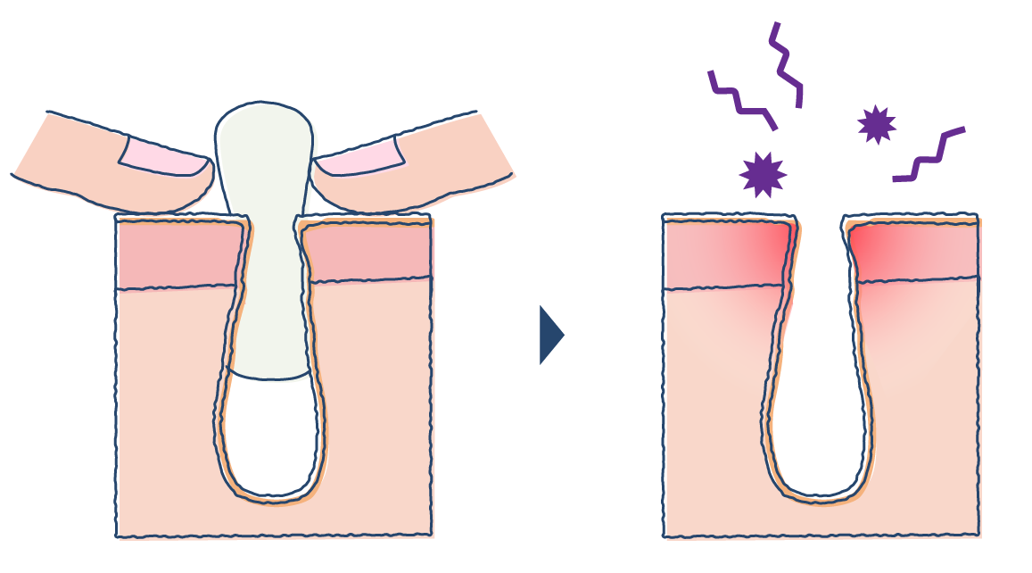 毛穴の詰まりを押し出す際は、毛穴周りの皮膚を強く圧迫させるため、皮膚が傷つきます。
