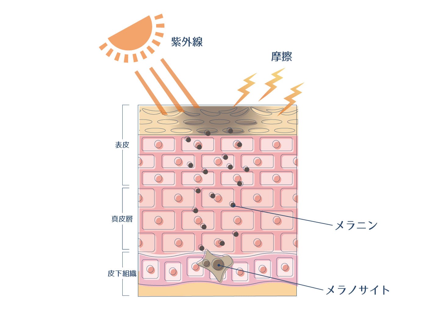 紫外線・摩擦によるメラニンの過剰生成
