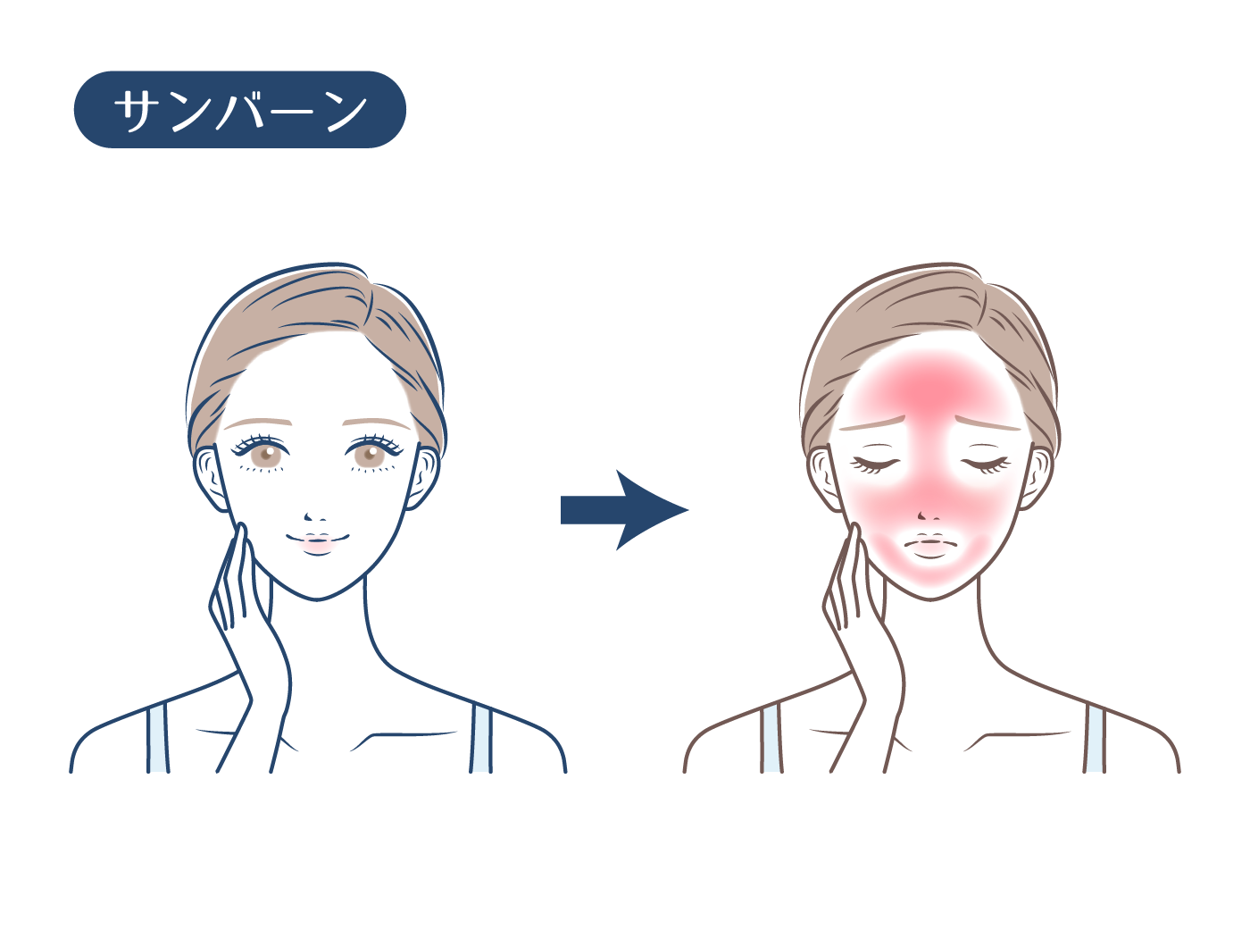 サンバーンとは、日焼けの直後に肌が赤く炎症を起こし、ヒリヒリとした痛みを伴う症状のことを指します。