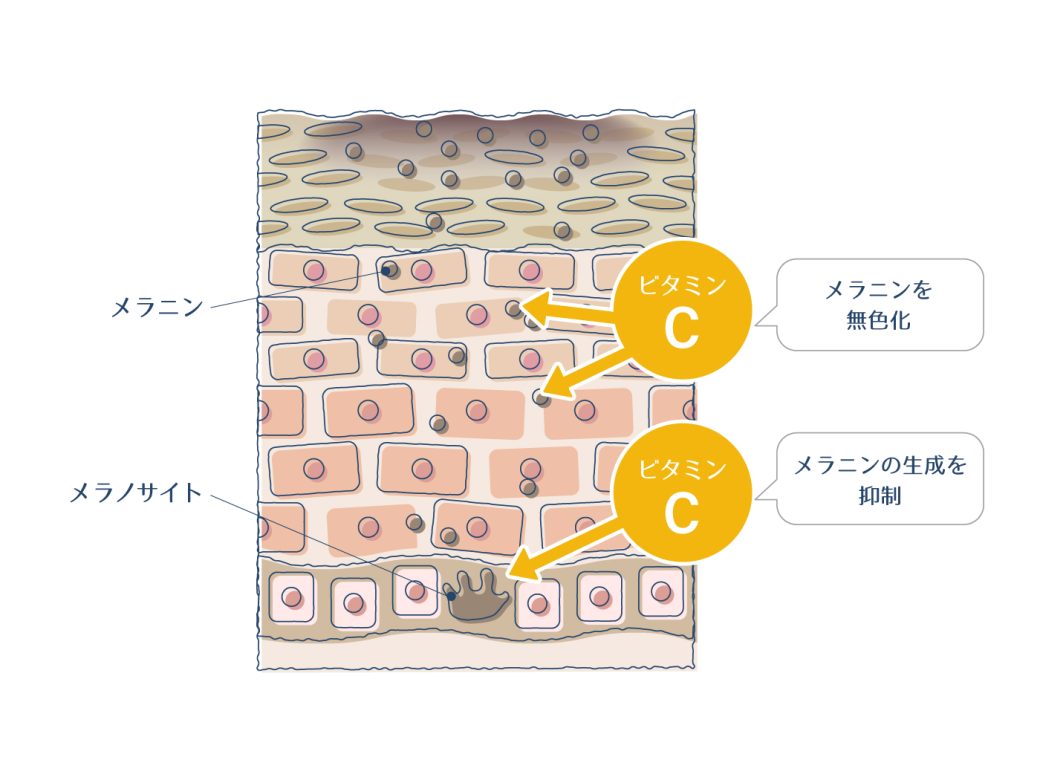 ビタミンCには、メラニンの無色化や、メラニンの生成を抑制する効果があります。