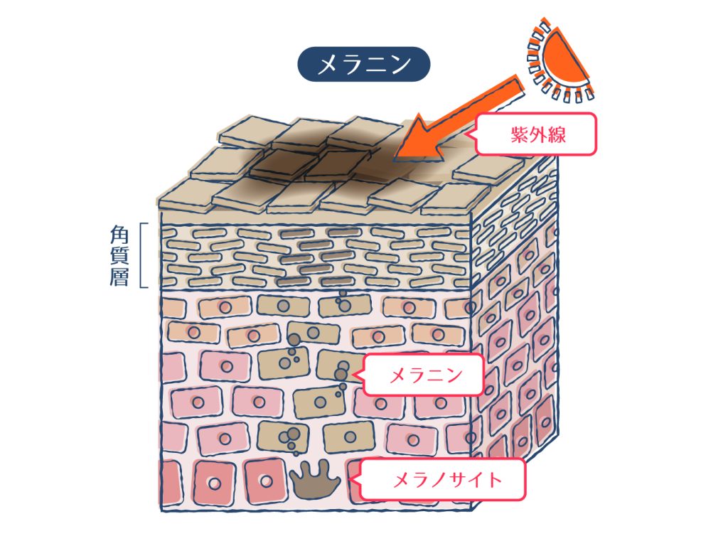 紫外線ダメージを受けると、ダメージから肌を守ろうと、メラノサイトがメラニンを過剰生成してしまいます。