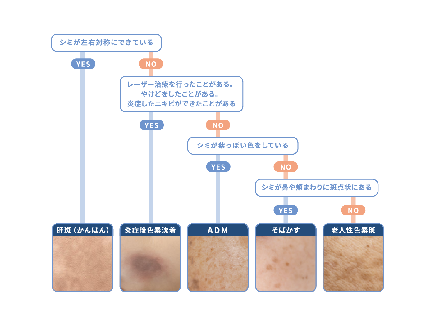 まずは、以下の診断シートで自身のシミの種類を確かめてみましょう。