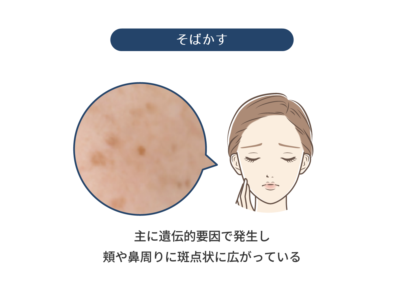 「老人性色素斑」とは、紫外線や肌の老化が原因でできる、褐色から黒色のシミです。