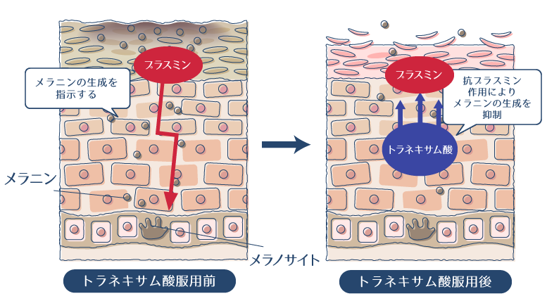 抗プラスミン作用とは、「プラスミン」というタンパク質の合成を抑制する働きのことです。