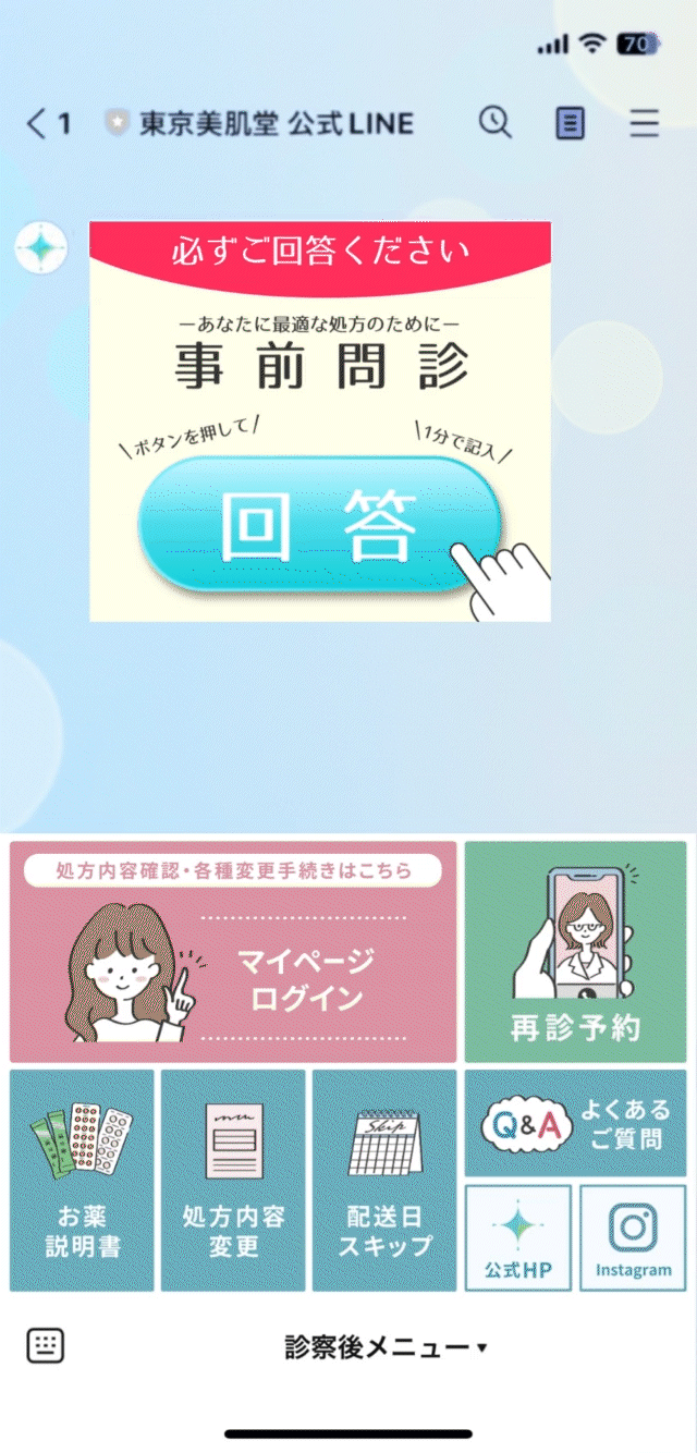 大切なお肌のことだから、いつでもLINEで相談を受け付けています。医師の診察は何度でも0円なので、購入後のサポートもしっかりしています。